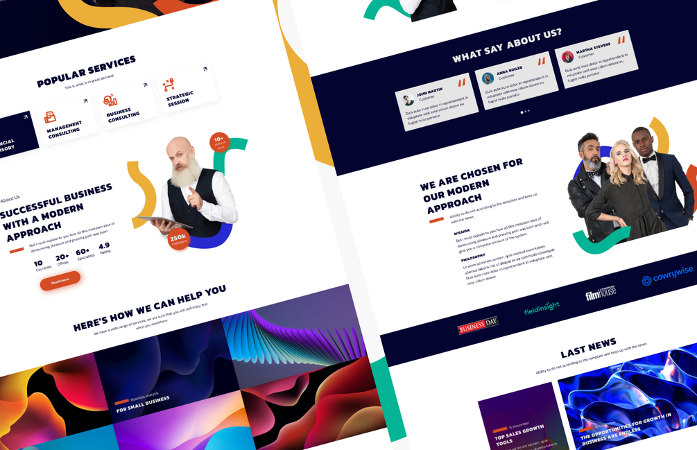 BERATER- is a site with a modern design that is able to convey the necessary information to the consumer. By purchasing this template, you get a ready-made product to promote your business. The template is suitable for consultations on business, marketing, finance and various types of strategies. It consists of 13 well organized Artboard components. The template is easy to install and edit. My template contains all the necessary pages for this direction.