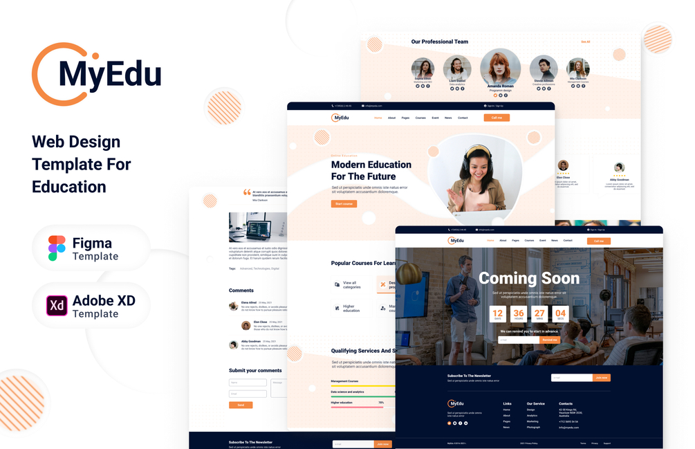 MyEdu is a professionally designed Figma and XD template for online education websites. We have developed a modern template for online platforms, courses, studies. There are required pages such as course description which can be a landing page for a course, a library of all courses, teachers, FAQ, prices, events, etc. The home page is designed as an educational platform.