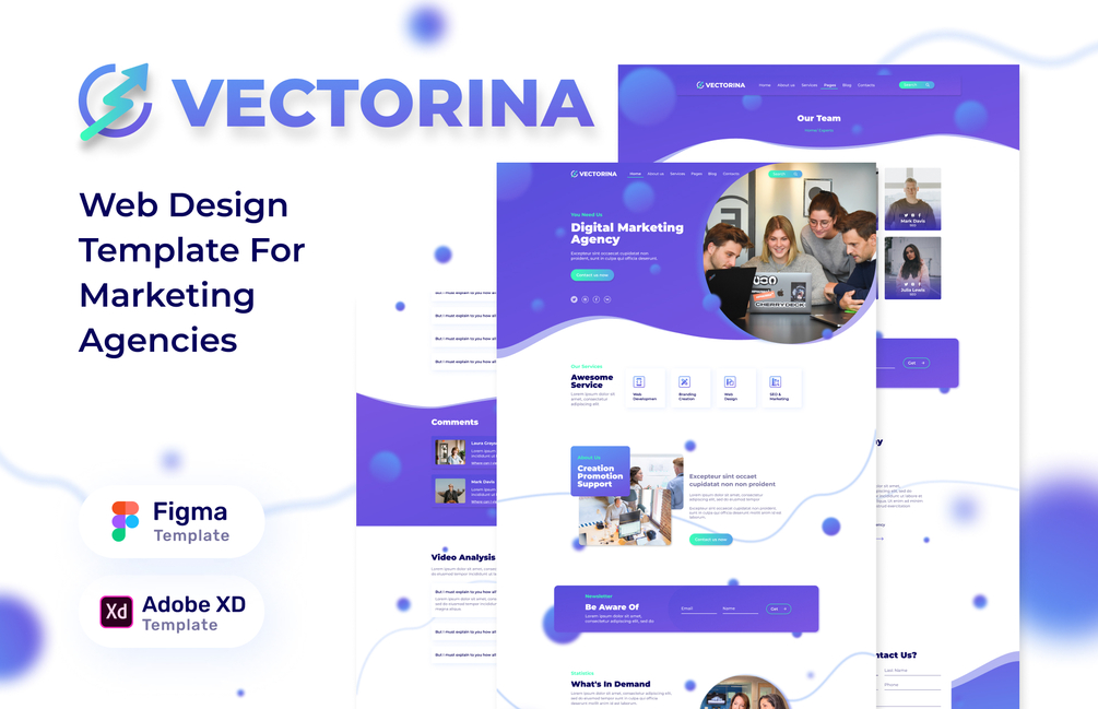 A modern and clean website for marketing companies. This template is ready for your marketing website, easy to use, customizable, layered structure. It is very easy to edit it. Make your website design awesome and eye-catching with this template. This template contains 11 unique and modern Figma and XD UI screens. You can easily edit and customize it with Figma and XD.